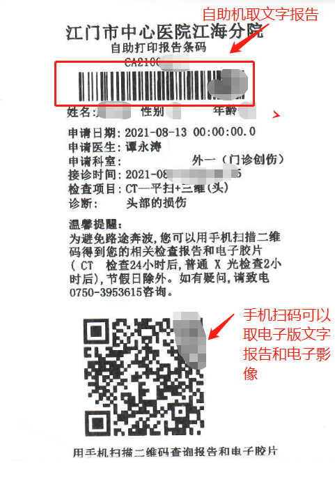 2 掃碼二維碼查閱電子報(bào)告和影像